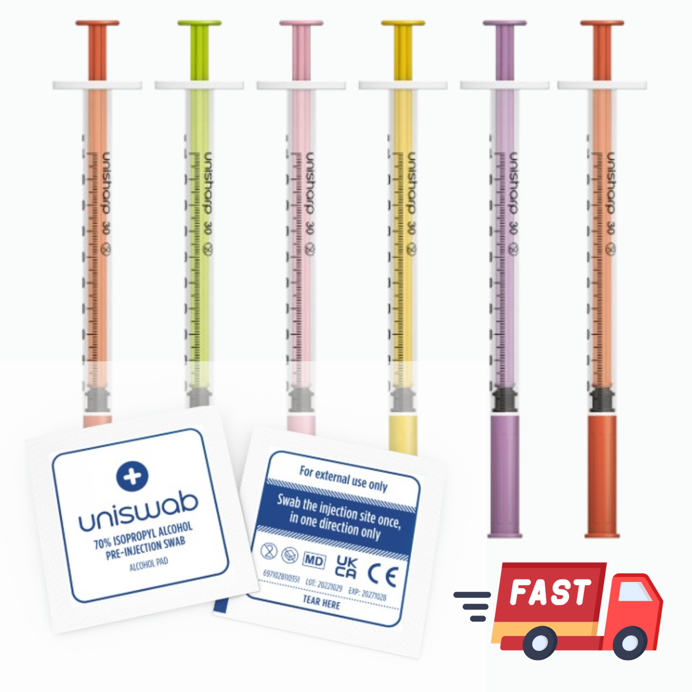 • 6 × 1 ml fixed-tip syringes (30 G gauge)